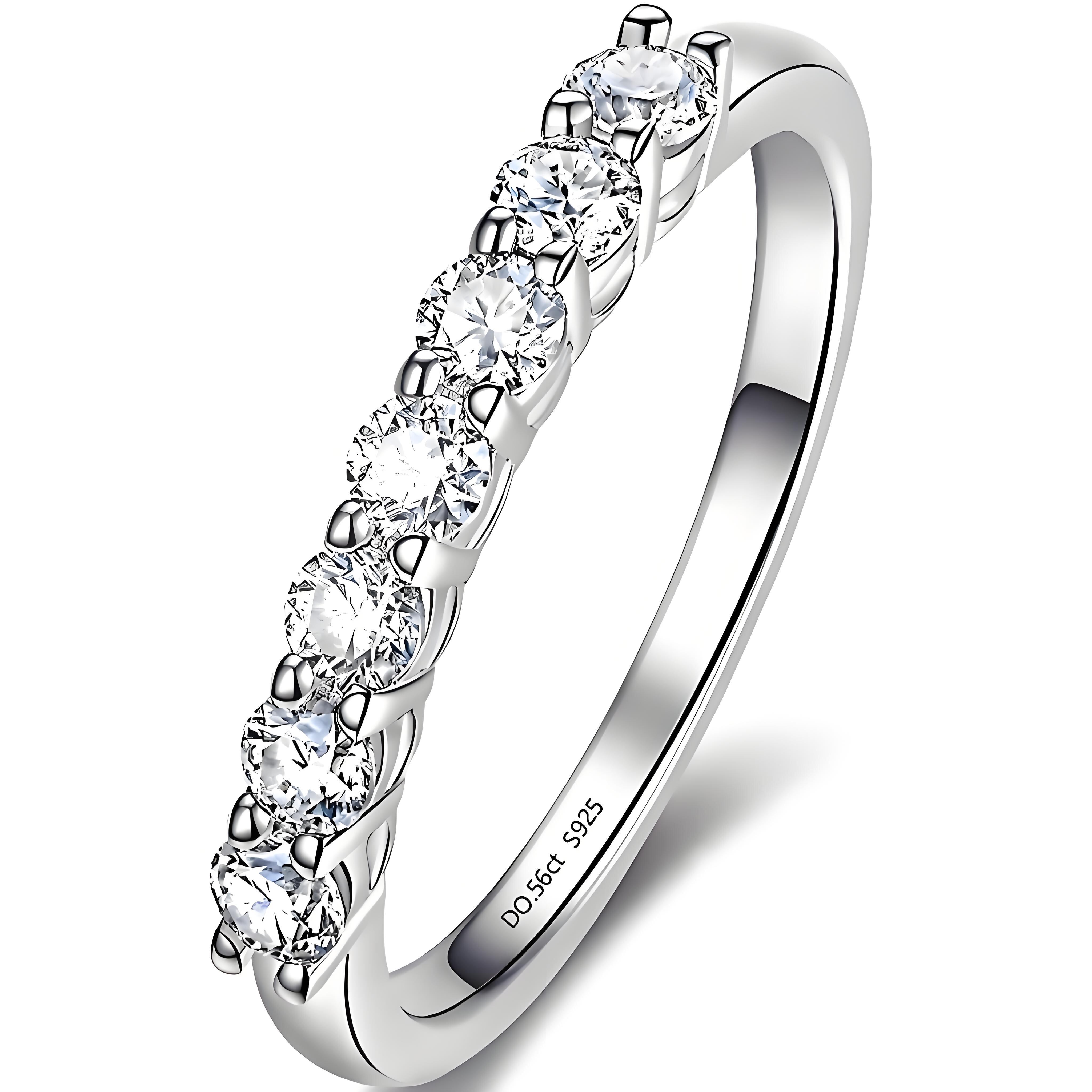 925スターリングシルバーラディアントモイサナイトハーフエタニティリング