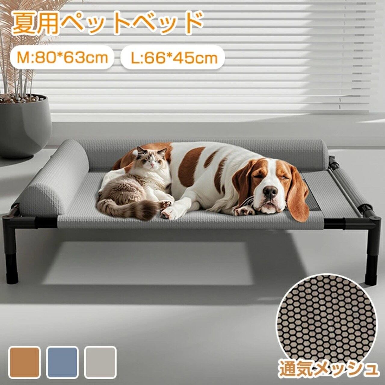 ペットベッド 脚付き 犬と猫用 夏用 吊りベッド 通気性が良い 蒸れにくい メッシュ素材 猫用ベッド 中型犬 大型犬 洗濯可能 組み立て簡単 高床式 地面から離れ 室内 室外使用