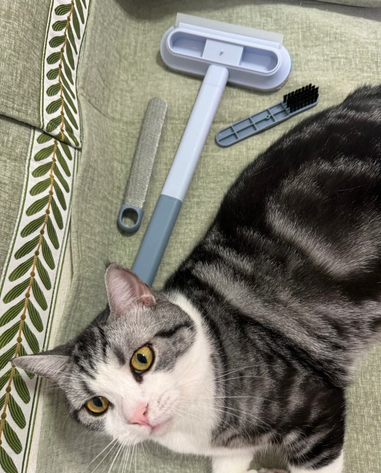猫 毛取りは二重の効果を持っている:猫の毛取りは毛抜きとして使用できるだけでなく、猫用ブラシは衣類ブラシとしても使用でき、一物両用で、便利で実用的である。