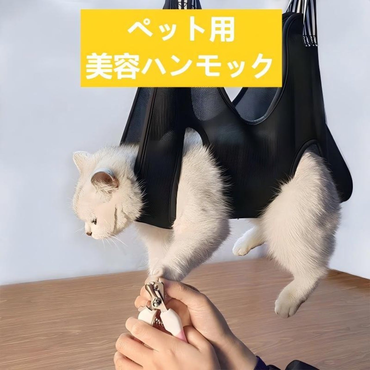 猫ちゃんや小型犬の爪切りやグルーミングに便利なペット用美容ハンモックです。