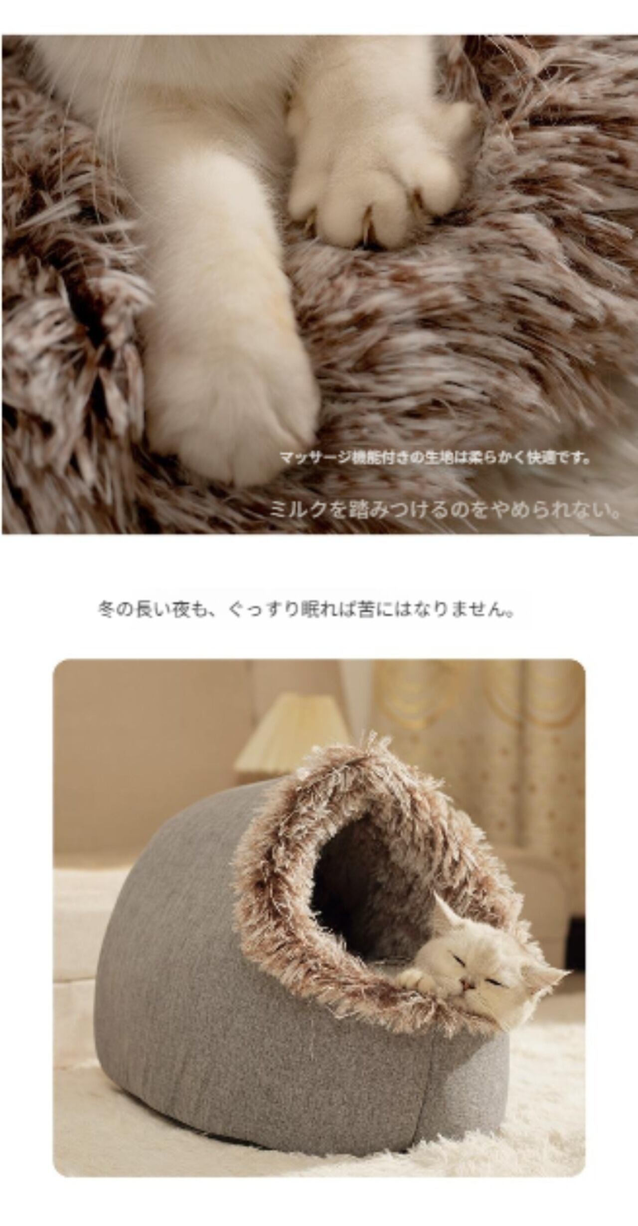 モコモコとした素材は、見た目にも愛らしく、ペットにとっても居心地の良い空間を演出します。お部屋のインテリアにもぴったりで、どんな場所にも馴染むデザインです。