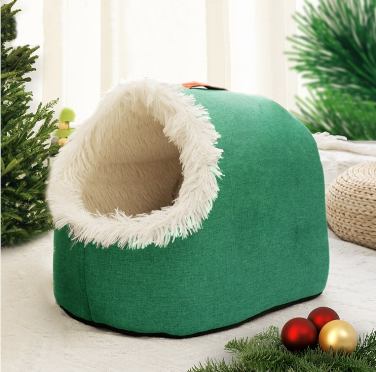 冬用 ペットハウス 防寒 保温 ハーフカバー型 手提げ 付き 猫 小型犬 モコモコ 素材 屋内 お出かけ 対応 安心 できる 空間/LT